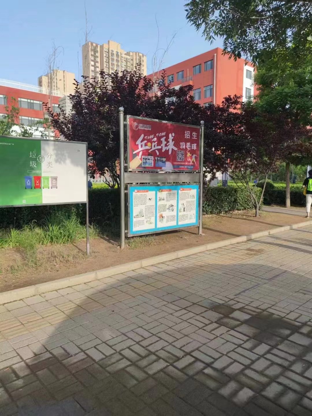 社区宣传栏广告安装在小区小广场、进出口处,处于小区住户必经之路之一。