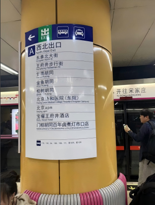 地铁导向牌广告覆盖1、2、4、5、6、7、8、9、10、15号线、亦庄线、昌平线。